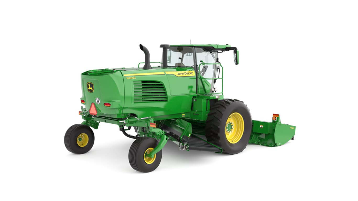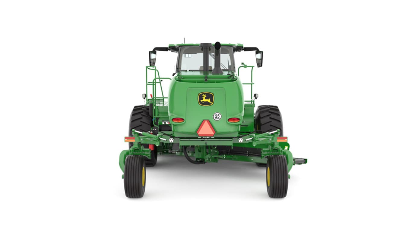 Maximizing efficiency and minimizing operator fatigue are crucial for achieving optimal results. John Deere's IntelliAxle Steer Assist, combined with the industry-exclusive rear-wheel steer assist system, provides operator to have more control of the windrower, enabling cutting and transport speeds.